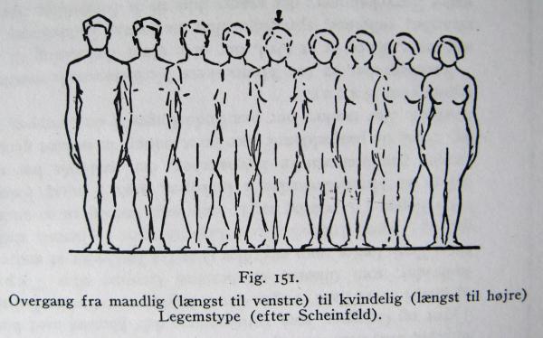 Illustration published in a medical textbook from the interwar period, demonstrating the transitions from masculine to feminine body shape.