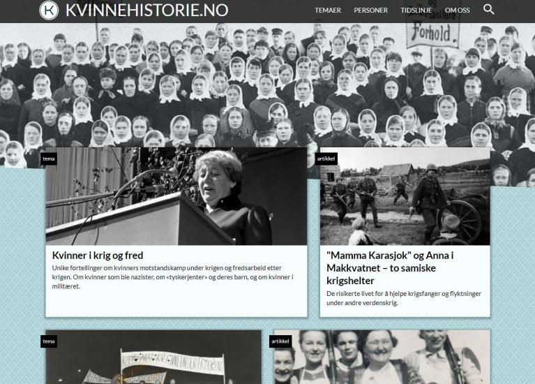 Nettsiden presenterer norsk historie fortalt og opplevd av kvinner. Les om viktige hendelser og temaer i norsk kvinnehistorie, som hvordan kvinner fikk stemmerett, om kampen for selvbestemt abort, om samisk kvinnehistorie, om lesbiske og skeive kvinner og mye mer.