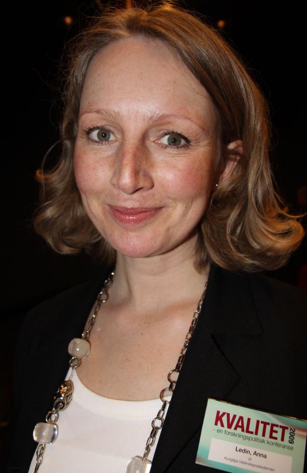 Anna Ledin er forsker ved Kungliga Vetenskapsakademien i Sverige. Ledin har tidligere jobbet for European Molecular Biology Organization, EMBO, der oppgaven var å analysere søkerne til EMBOs postdoktorprogram (Long Term-Fellowship programme). Analaysen ble gjort i samarbeid med forskerne Frank Gannon og Lutz Bornmann, og resultatene er publisert i artikkelen: ”A persistent problem. Traditional gender roles hold back female scientists”