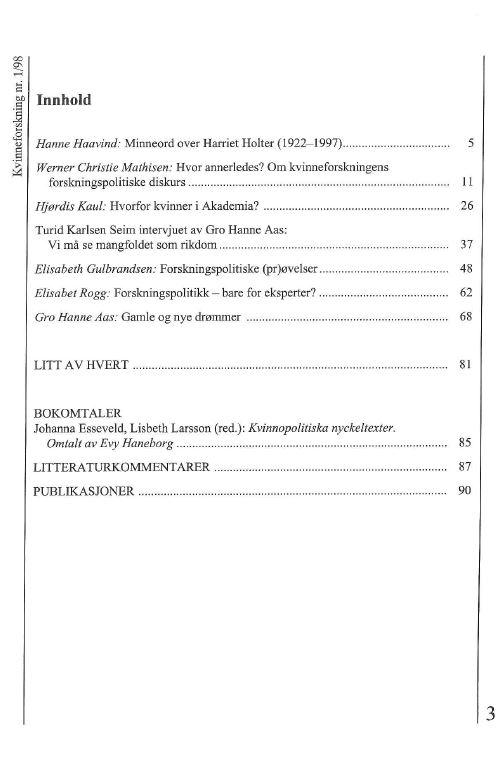 Hvor annerledes? Om kvinneforskningens forskningspolitiske diskurs, av Werner Christie Mathisen